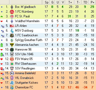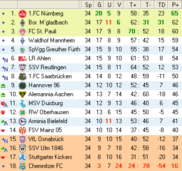 Home » Statistiken » 2000/01 » Tabellen [2. Bundesliga]