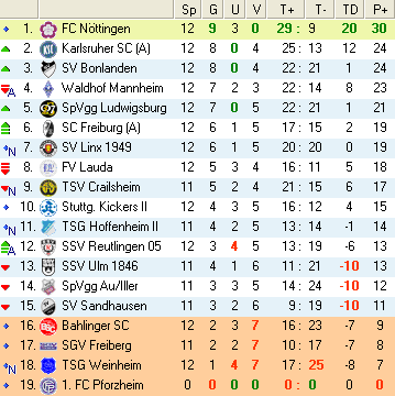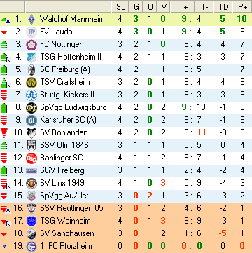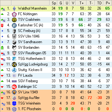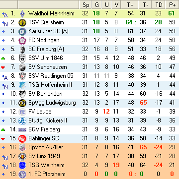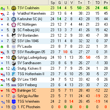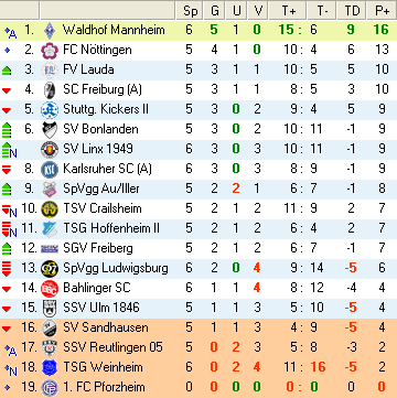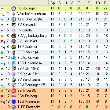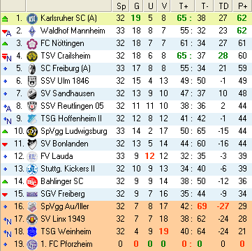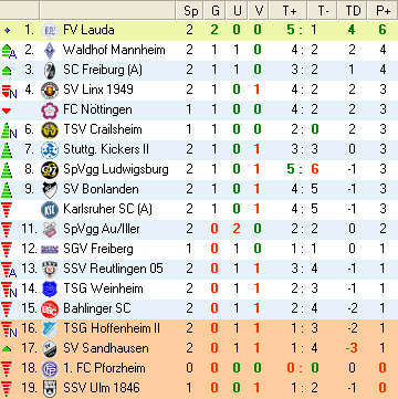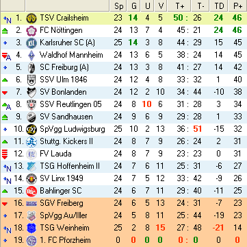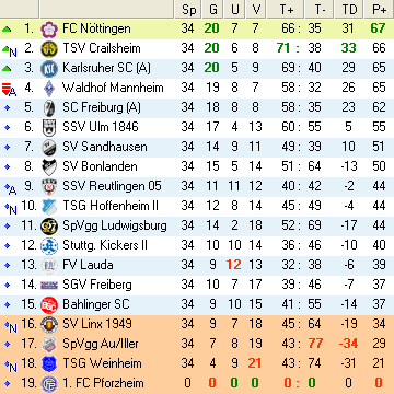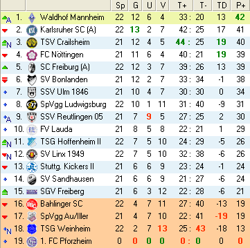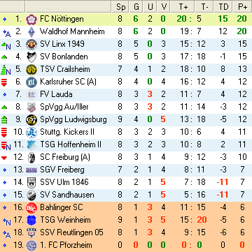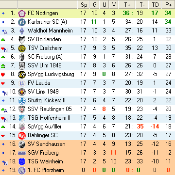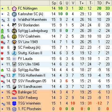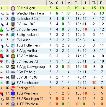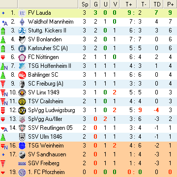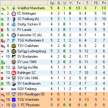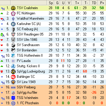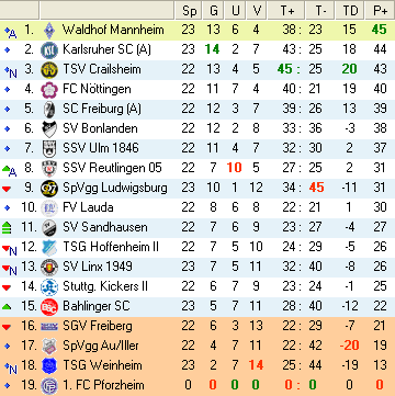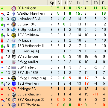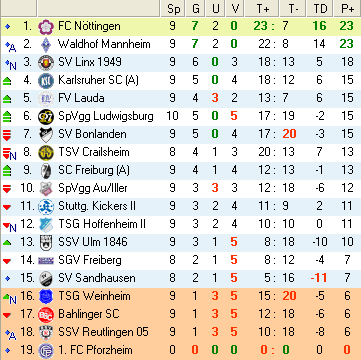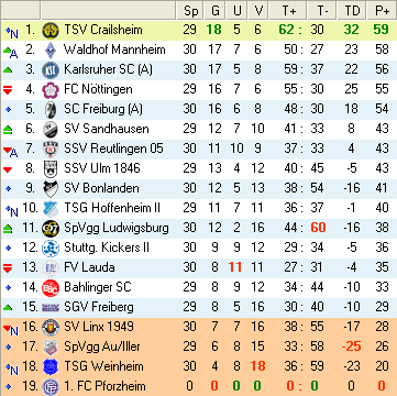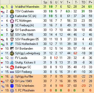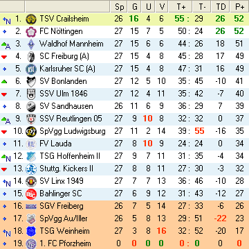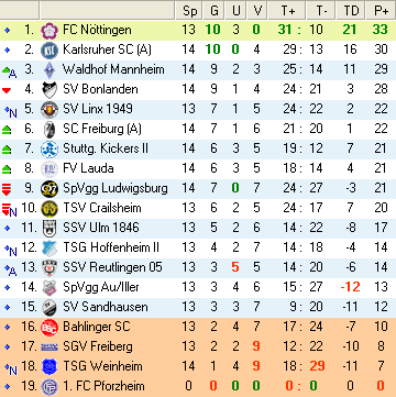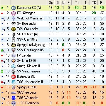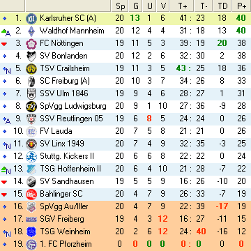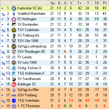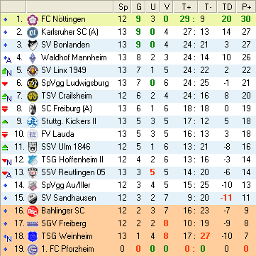 Alle Statistiken beziehen sich auf den Spielplan ohne den 1. FC Pforzheim (wegen Insolvenz wurden dessen Spiele annulliert)