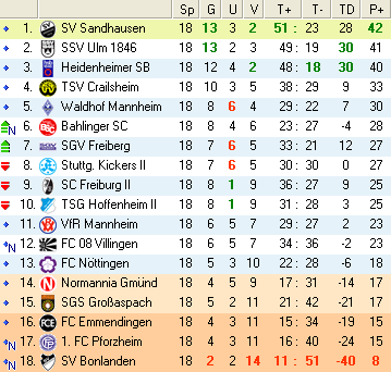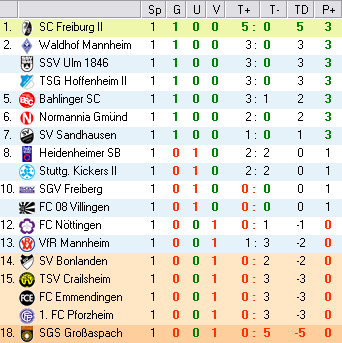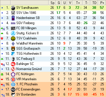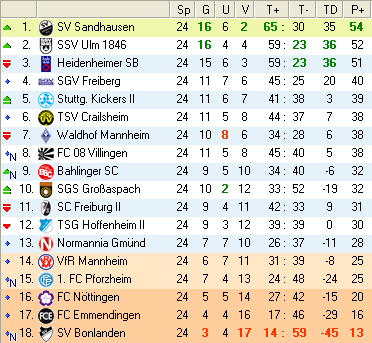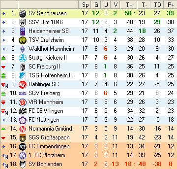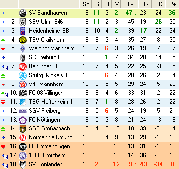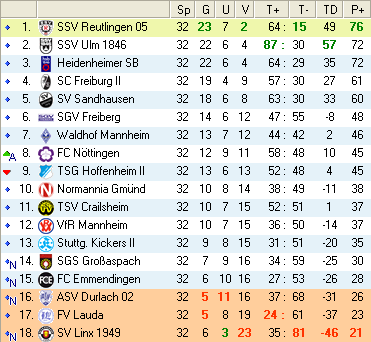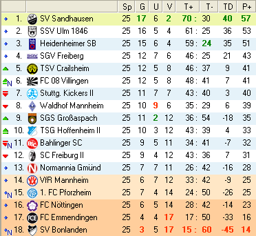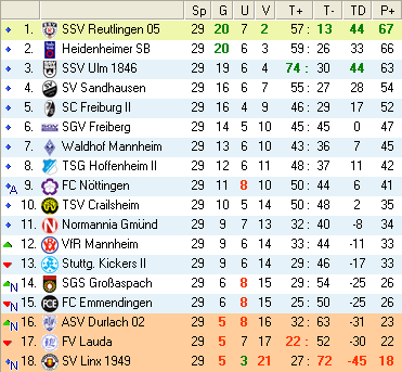 | 28. Spieltag | 5 | 1 | 3 | 27 | 17:10 | 3,00 | 0 | 3/3 | 37 | 1 | 2 | 6.307 | 701 | » Tabelle |