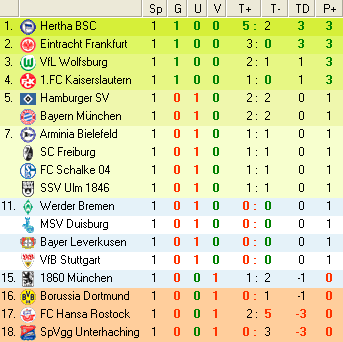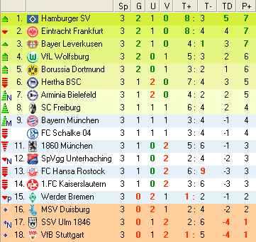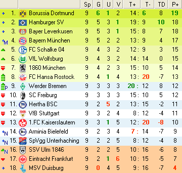 | 9. Spieltag | 3 | 3 | 3 | 15 | (6:9) | 1,67 | 1 | 1/1 | 34 | 2 | 1 | 292.303 | 32.478 | Tabelle |