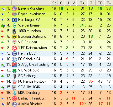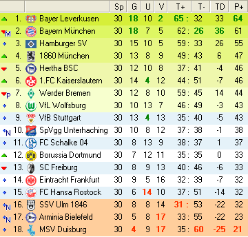 | 30. Spieltag | 3 | 5 | 1 | 16 | (10:6) | 1,78 | 1 | 3/3 | 38 | 1 | 0 | 312.057 | 34.673 | Tabelle |