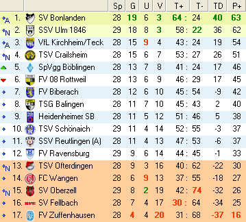 | 28. Spieltag | 4 | 1 | 3 | 28 | (15:13) | 3,50 | 2.520 | 315 | Tabelle |