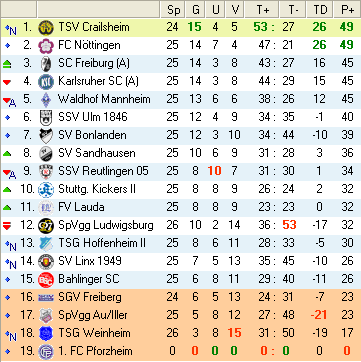 Alle Statistiken beziehen sich auf den Spielplan ohne den 1. FC Pforzheim (wegen Insolvenz wurden dessen Spiele annulliert)