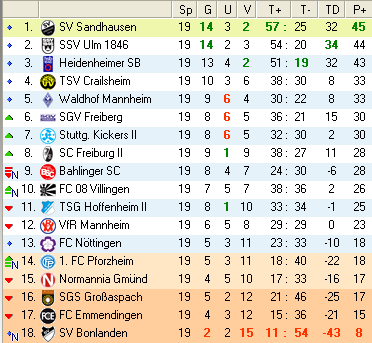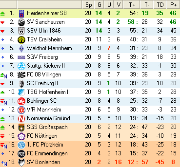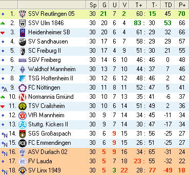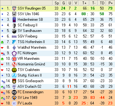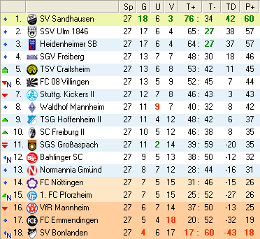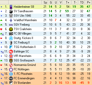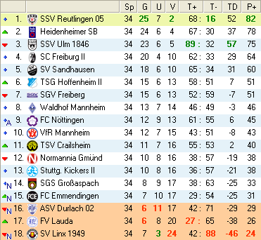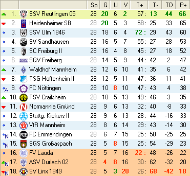 | 28. Spieltag | 5 | 1 | 3 | 27 | 17:10 | 3,00 | 0 | 3/3 | 37 | 1 | 2 | 6.307 | 701 | » Tabelle |